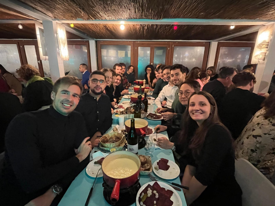 Nous étions 16 alumni, venus de Genève, Vaud, Fribourg, Neuchâtel et de France voisine, rassemblés pour partager une fondue et échanger dans un cadre convivial.
