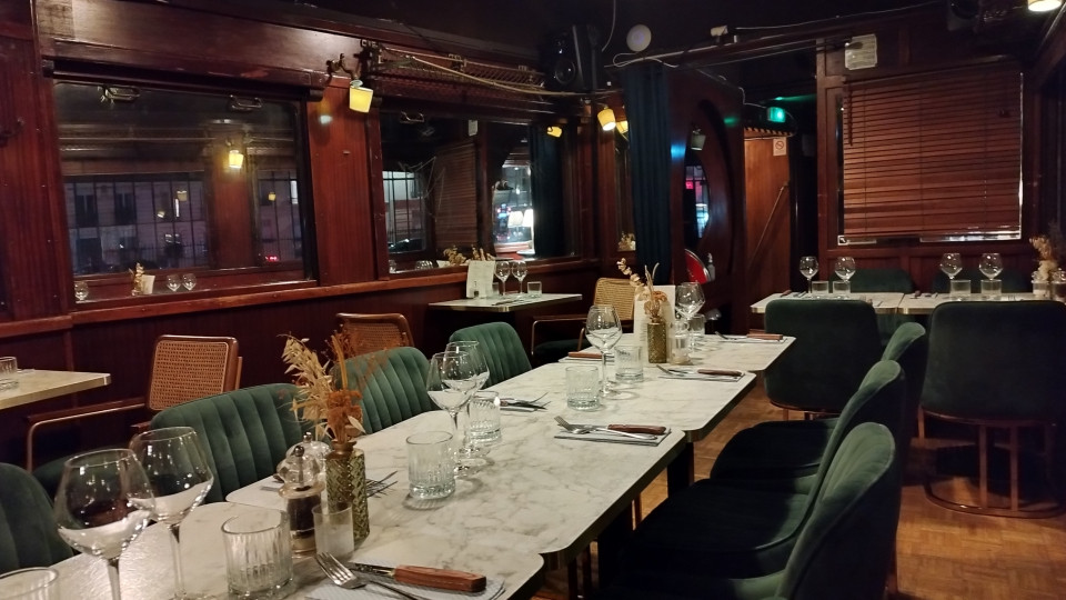 La salle de ce restaurant est un ancien wagon de l’orient express réaménagé.