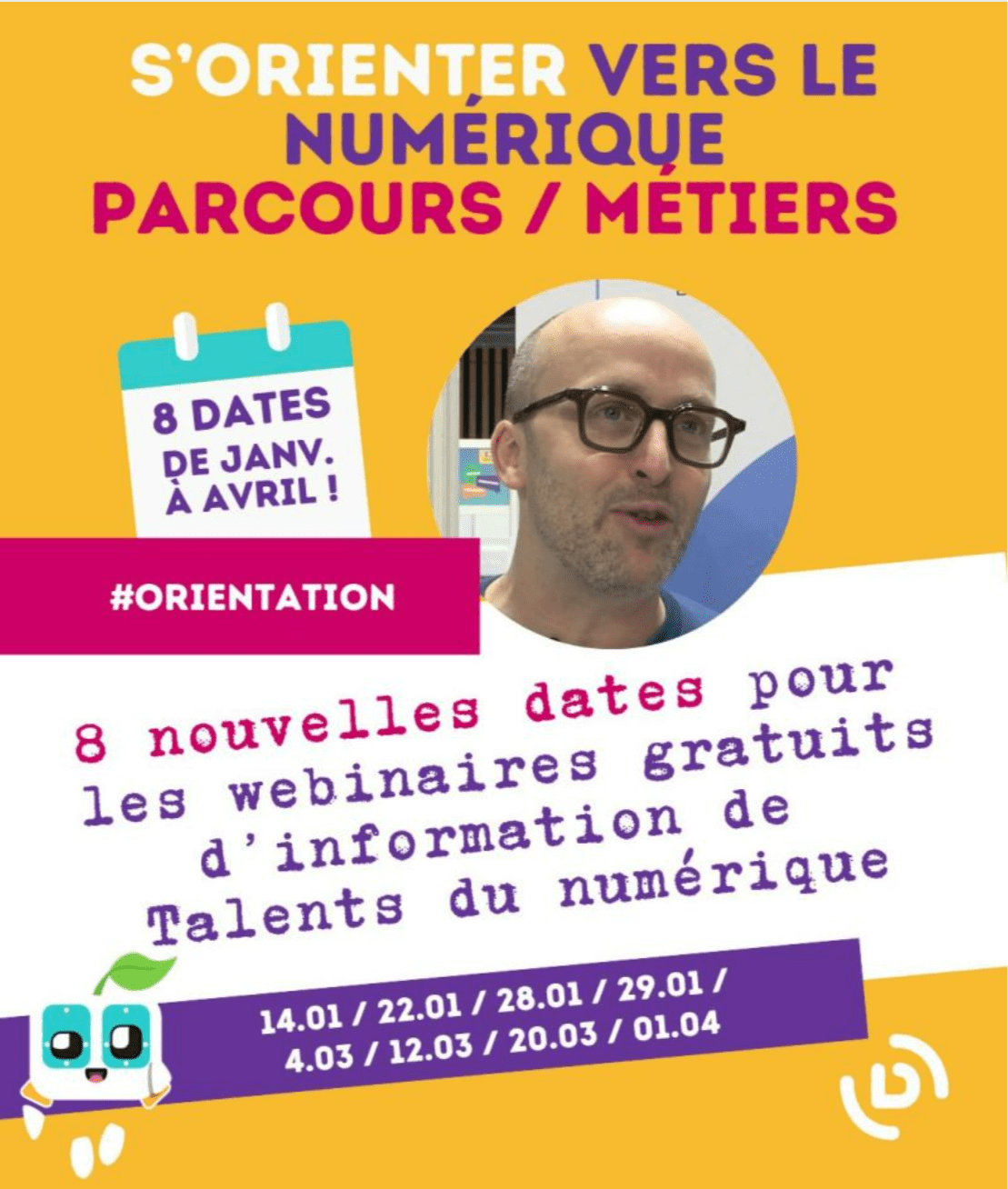 Suite au succès des webinaires sur le numérique, ses métiers et les parcours de formation organisés lors de la semaine du numérique et des sciences informatiques en décembre, l’association Talents du numérique propose 8 nouvelles dates au premier trimestre 2026 dont :